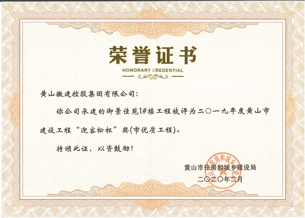 二〇一九年度黃山市建設工程“迎客松杯”獎
