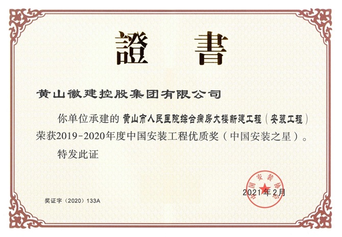 2020年度黃山市建筑工程裝飾獎(jiǎng)