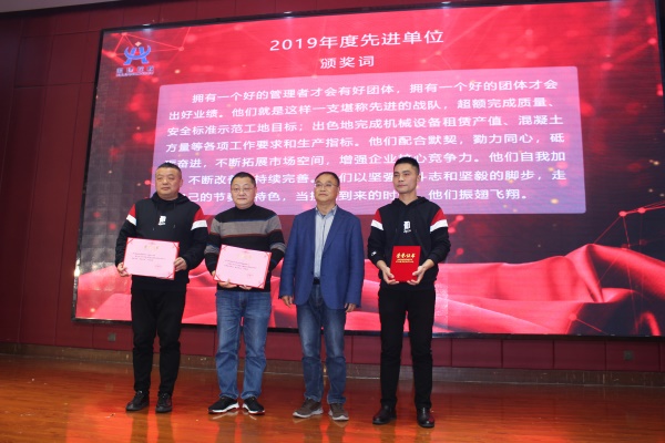 表彰大會(huì)在主持人的祝福聲中拉開(kāi)帷幕。董事長(zhǎng)王德修作新年致辭。集團(tuán)財(cái)務(wù)總監(jiān)孫巍芳宣讀了對(duì)2019年度評(píng)選出的優(yōu)秀共產(chǎn)黨員、優(yōu)秀員工、優(yōu)秀項(xiàng)目經(jīng)理、優(yōu)秀監(jiān)理工程師、先進(jìn)單位的表彰決定。集團(tuán)黨總支書(shū)記、董事長(zhǎng)兼總經(jīng)理王德修、副總經(jīng)理張弘、副總經(jīng)理汪又華、總經(jīng)理助理吳立農(nóng)、財(cái)務(wù)總監(jiān)孫巍芳、工程部經(jīng)理方向?yàn)槭鼙碚玫膯挝缓蛡(gè)人頒發(fā)了獎(jiǎng)金和榮譽(yù)證書(shū)。