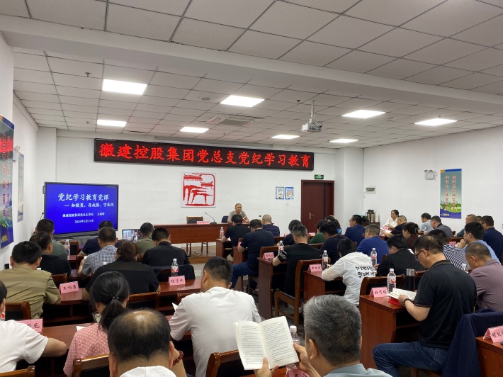 為進一步推動黨紀學習教育在非公有企業(yè)走深走實,5月31日,徽建控股集團黨總支書記王德修以《知敬畏、存戒懼、守底線》為主題,為全體黨員干部講授黨紀學習教育專題黨課。