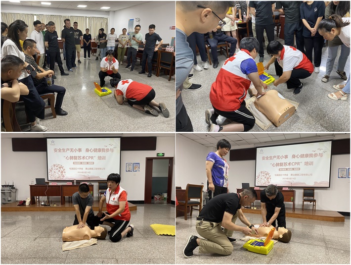 9月14日,第25個(gè)世界急救日到來之際,為保障職工的生命安全和身體健康,增強(qiáng)大家的急救意識(shí)和應(yīng)急處置能力,營造“人人學(xué)急救、人人會(huì)急救、急救在身邊”的良好氛圍。由徽建控股集團(tuán)黨總支牽頭,黃山徽建工程有限公司聯(lián)合屯溪區(qū)紅十字會(huì)開展“安全生產(chǎn)無小事,身心健康我參與”心肺復(fù)蘇術(shù)(CPR)培訓(xùn),集團(tuán)各子公司、各項(xiàng)目部積極派員參與。