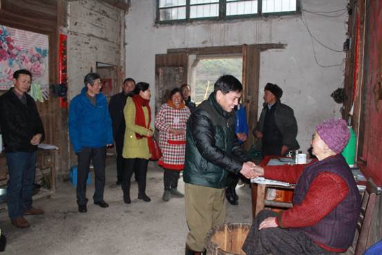 1月28日,集團(tuán)黨總支書記吳春生與市住建委黨委委員、總工程師劉幸華、市園林局副局長陳衛(wèi)民、市住建委政治處主任洪海燕等一行冒著細(xì)雨,深入祁門縣箬坑鄉(xiāng)紅旗村慰問困難老人。在祁門縣箬坑鄉(xiāng)黨委委員許躍飛、紅旗村黨支部書記吳華清、村長吳躍進(jìn)以及市住建委掛職干部、村第一書記劉文冰的陪同下,對(duì)紅旗村的10名孤寡病殘貧困老人開展結(jié)對(duì)共建和走訪慰問活動(dòng),并給他們每人送去了500元的慰問金,以幫助他們度過一個(gè)祥和、快樂的春節(jié)。